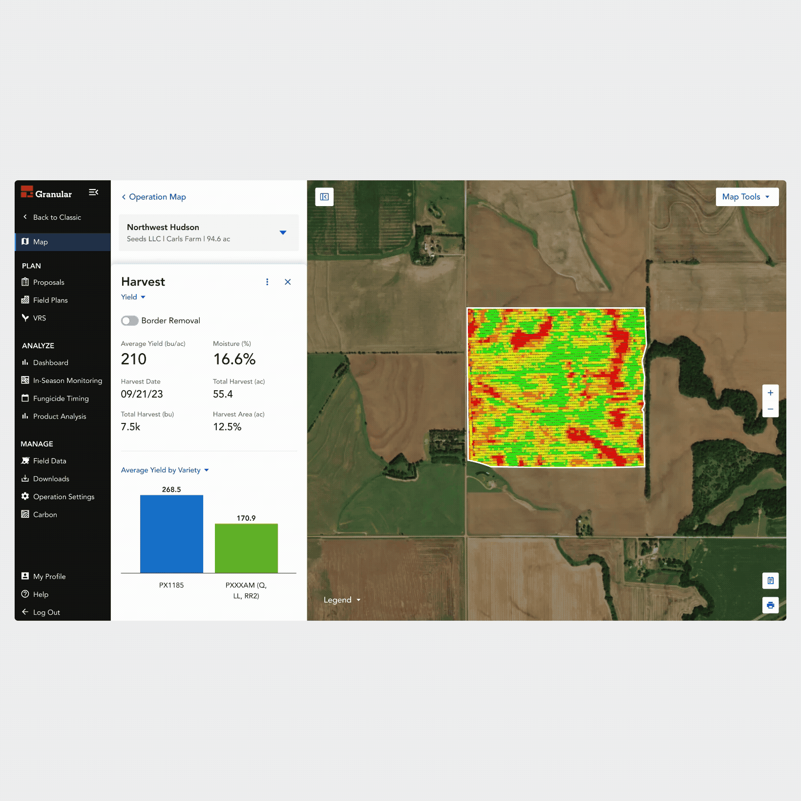 Field Maps within Granular Insights are used to visualize planning, harvest, and environmental data on a field. Viewing this visual field data – or field layers – is crucial part of managing a farm for Pioneer Seed Reps, field agronomists, and growers.